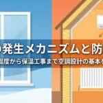 - 熱橋(ヒートブリッジ):断熱が途切れる部分で表面温度が局所的に低下し、結露リスクが高まる