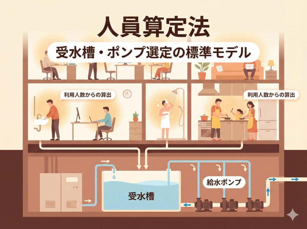 1. 人員算定法:受水槽・ポンプ選定の標準モデル