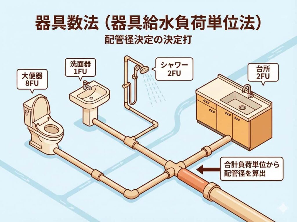 2. 器具数法(器具給水負荷単位法):配管径決定の決定打